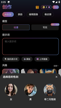 1、支持通过文字描述)或预设风格模板,生成动漫、3D或写实风格的女孩形象。