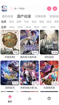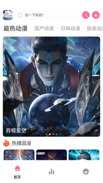 1、软件打开后即可直接使用,首页提供多种类型动漫可以免费看。