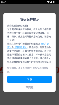 1.首先打开软件阅读“隐私保护提示”后,点击“同意”按钮进入APP