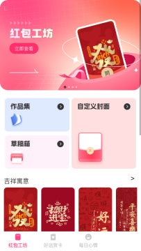 好运红包封软件安卓版是一款多功能的红包贺卡制作软件,软件提供丰富的设计工具支持贴纸文字等多种创作方式,根据用户选择主题自动生成和谐配色方案,内置大量传统吉祥图案和祝福语素材库,用户可以制作挑选快速制作红包贺卡,提供多种风格背景音乐可自由搭配作品!