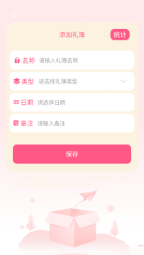 4.然后进入“添加礼簿”菜单界面, 输入名称、类型、日期、备注后点击“保存”按钮就完成了