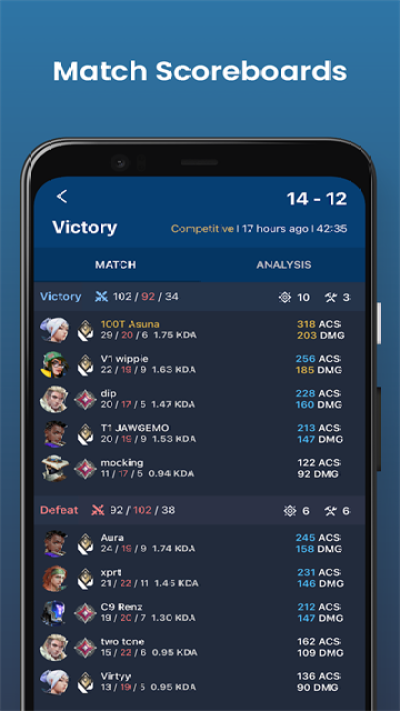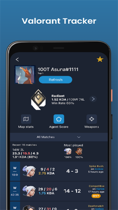 瓦罗兰特战绩查询助手app是专为瓦罗兰特(Valorant)游戏玩家设计的实时战绩查询工具,提供全面的游戏数据统计与资讯服务,助力玩家轻松评估比赛表现、对比朋友与对手的分数,并提升游戏技巧。