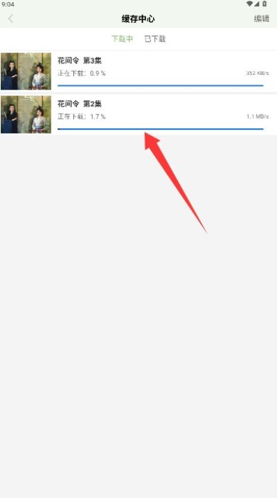 4、在下载管理主中心可实时查看缓存进度状态,管理已下载完成和正在下载的视频。