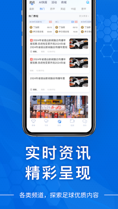 “不用翻多个网站,一个App搞定所有足球赛况——从英超到村超,比分、新闻、数据全都有。”