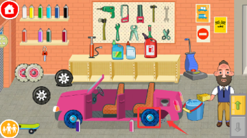 3、进入游戏点击地上的喷漆可以帮车子改颜色。