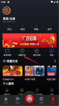 1、在我的页面点击观看历史。