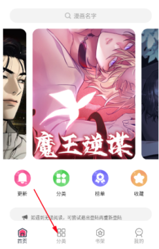 1、打开软件后进入分类页面,轻松查找各类漫画资源。