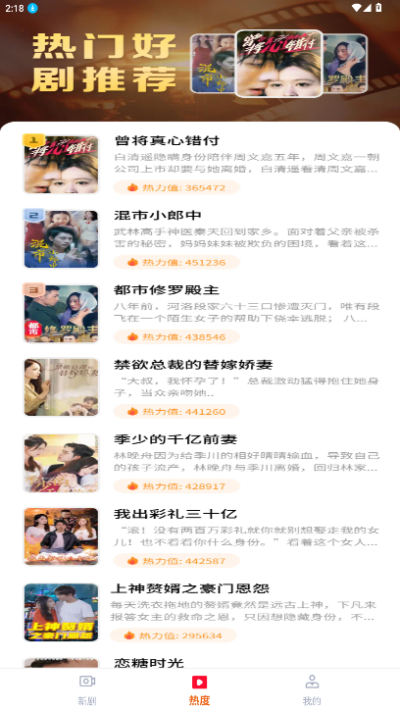 2、在热度页面中可以了解目前热力值最高的各种短剧,可以自由的选择;