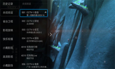 6、安装完成后打开应用,【小鹰直播电视版】默认展示的是央视频道,如果需要观看其他频道的节目,可以在左侧的节目列表中自行选择。
