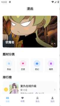 2、漫画页面将漫画进行了详细的归类,包含了恋爱、热血以及奇幻等类型。