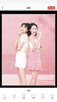 选好之后,开始进入裁剪部分,你可以通过调整边框进行图片裁剪,也能定义图片的屏幕占比,如1:1、9:16、16:9、3:4、4:3。