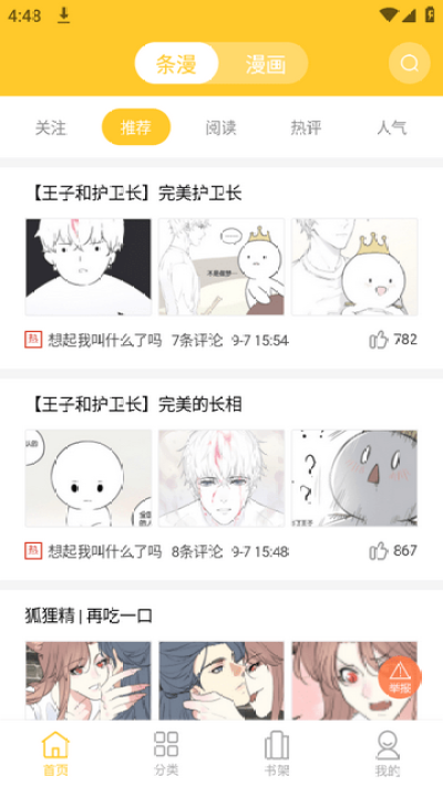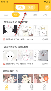 1、首页顶部点击“条漫/漫画”→选择心仪作品→点击章节开始阅读。