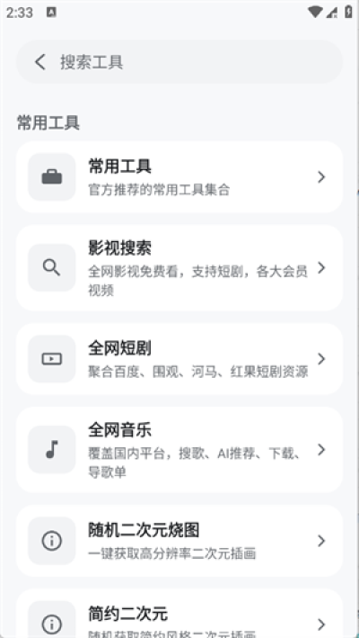 2、打开进入软件,在首页可以看到很多的工具资源类型