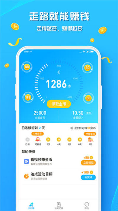 只需开启手机权限,《走路赚钱花》就能自动记录你的每一步!