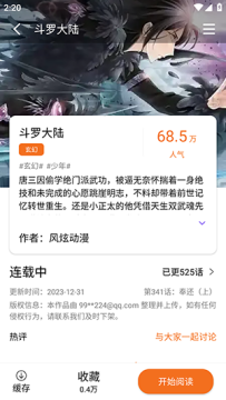 1、点击想看的漫画,在详情界面点击开始阅读。