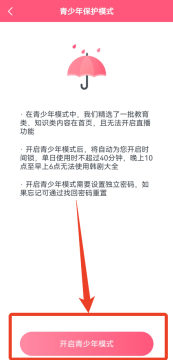 2、 在设置菜单中选择首项【青少年模式】,跳转至模式配置页面后点击下方【开启青少年模式】按钮,该模式支持独立密码设置并限制每日40分钟使用时长;