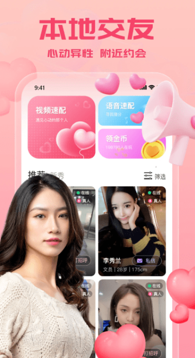 附近来约会软件免费下载官方版是一款专注于附近陌生人交友约会的社交应用。通过这款软件,用户可以轻松结识身边有趣的新朋友,享受智能同城匹配带来的便捷交友体验,助力用户找到属于自己的缘分。