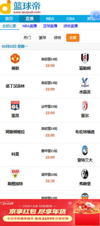 相关推荐 直播吧手机版本v6.7.9官方版下载 360直播免费看cba20233.0.30最新版下载 AK直播免费足球直播v2.1.6最新版下载 NFL橄榄球免费看球app3.3.1最新版下载 球帝直播官方免费版4.11.1下载