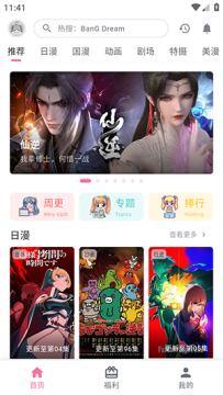 1、软件首页提供了近期热门的动漫番剧。