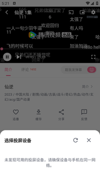 2、在播放界面点击右上角的TV图标可以搜索投屏设备。