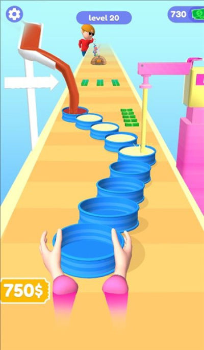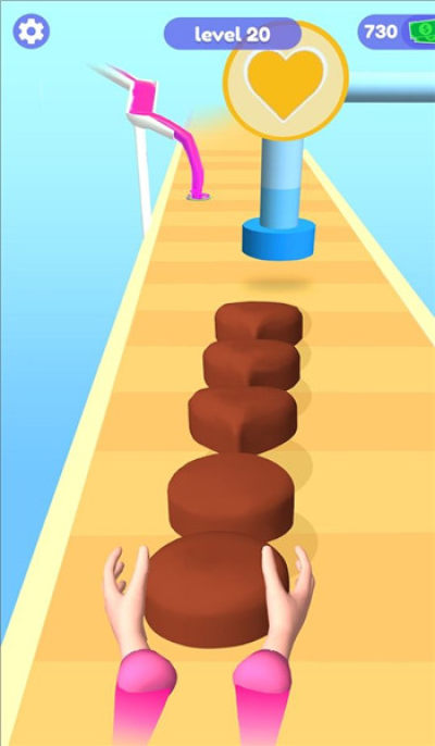 2、蛋糕叠加策略,点击屏幕触发食材叠加,需精准判断穿门时机,避免因碰撞损失食材。