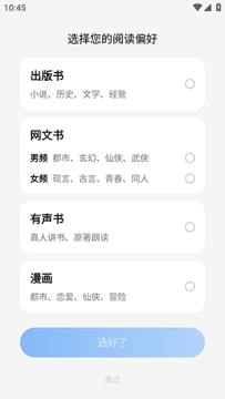 1、打开软件先简单进行设置,选择感兴趣的类型进入软件。