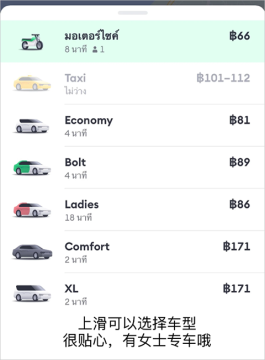 3、这个时候你可以上滑选择车型,可以说非常的贴心,里面还有女士专车哦。