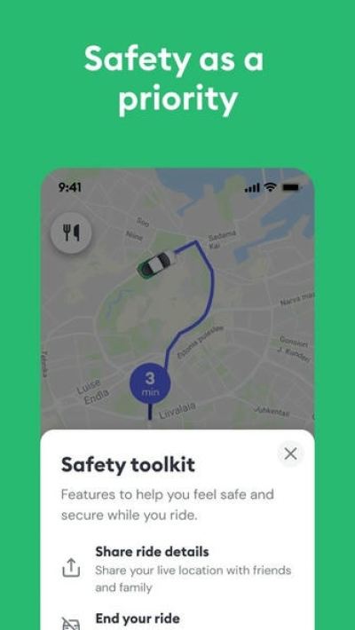 bolt打车软件是一款十分受欢迎的国际打车app,该软件能解决你出行的后顾之忧,一键搜索附近的车辆,通过定位可以实时了解身边的出租车,预约下单可以在指定时间上车,按照给你的地址完成体验,操作起来也是非常的简单,只需要点击按钮,就可以订购一辆顺风车,由附近的司机接送,享受乘坐廉价顺风车到达目的地的过程。
