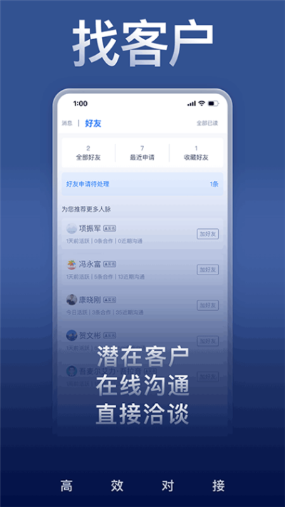 打造垂直行业社交网络,助您结识上下游合作伙伴、渠道商、服务商,构建高价值业务关系网。
