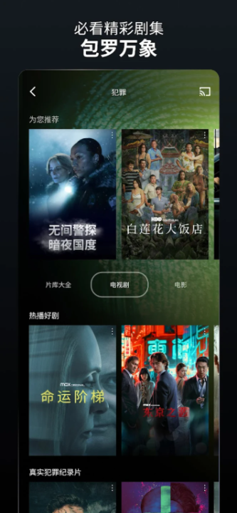 包含HBO原创剧集、华纳兄弟院线电影、DC独立电影、真实犯罪系列及合家欢节目。