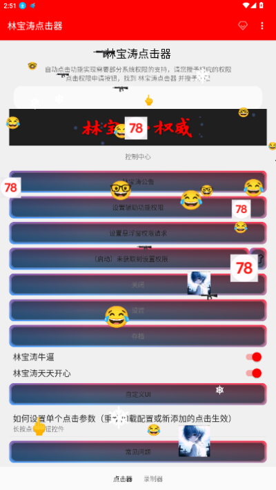 林宝涛点击器自动板最新版是一款为手机用户量身打造的多功能自动点击工具,以高度灵活的参数设置和稳定的性能为核心,支持自定义点击频率、时长及位置,同时具备独立安防措施,保障自动化操作安全高效。