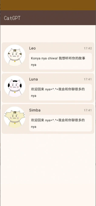 Nyan Chat将虚拟养宠、个性表达与轻社交完美融合,构建了一个温馨且富有活力的猫咪社区。应用内,猫咪角色不仅具备基础AI对话能力,能与用户进行简单互动和情绪反馈,还支持用户之间分享造型、参与主题装扮活动、加入社区交流,让用户在享受装扮乐趣的同时,也能结识志同道合的朋友,共同探索这个充满惊喜的猫咪世界。