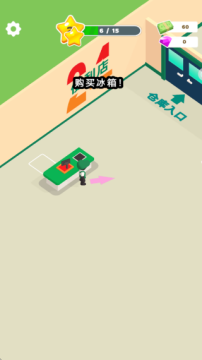 2、利用获取的金币打造收银台,然后开始购买冰箱,放置各种物品,吸引大量顾客。