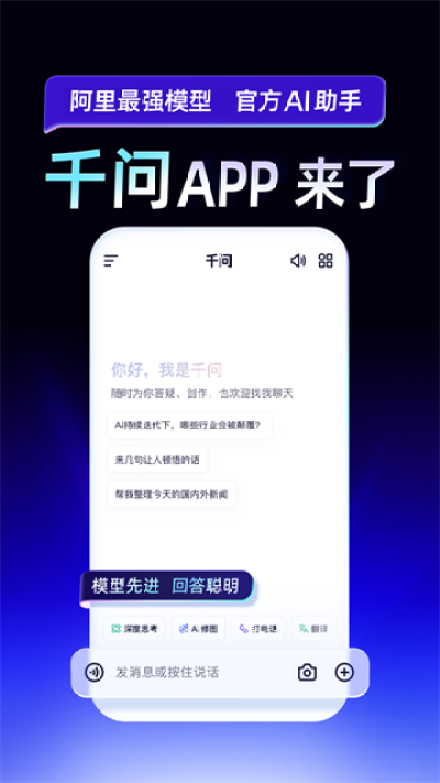 千问官方免费版2026最新版是基于Qwen大模型开发的全能型AI助手,软件支持文字、语音和图片等多种输入方式,能够处理复杂的综合任务帮助用户解决各种烦恼,具备超长上下文的处理能力,能够大幅提升复杂上下文的交付上限,软件界面设计简洁直观,功能一目了然用户可以轻松上手!