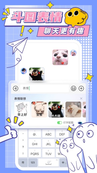 表情包联想:输入关键词自动推荐匹配表情包,如输入“开心”弹出😄🎉🥳,让对话更生动。