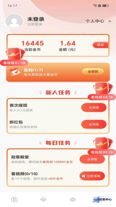 看视频赚零花安卓版,畅享海量精彩视频,智能推荐懂你所爱。浏览省流量,运行更流畅,看视频、签到、做任务,轻松赚零花,精彩不错过。