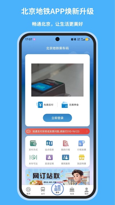 北京地铁app下载安装最新版是专为北京地铁乘客打造的官方综合服务平台,以“高效出行、无忧服务、智慧生活”为核心理念,集成刷码乘车、线路规划、运营保障、便民消费等核心功能,覆盖地铁出行全场景需求。无论是日常通勤、旅游探访,还是参与地铁志愿服务,用户均可通过一个APP轻松搞定,开启便捷、安全、有趣的地铁出行新体验。
