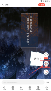 3、点击页面中间,会跳出菜单栏,点击右下角箭头所指评论图标;