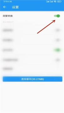 3、在设置菜单中找到“简繁体转换”开关,开启后即可自动将繁体内容转为简体显示。