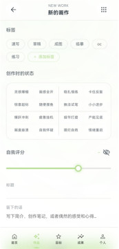 3、滑到最底下可以给这张画添加标签、创作时的状态、自我评价、标题等内容,都设置好后点击保存。
