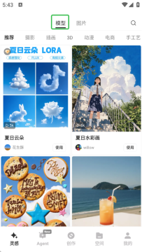 2、进入主页后可以看到不同领域的风格模型,比如摄影、插画、3D、动漫等