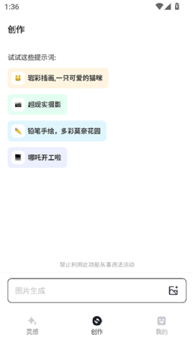 5、在创作页面,输入提示词就能快速生成图片