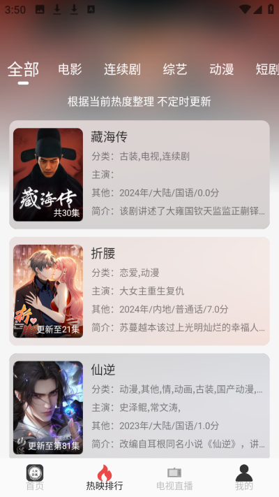 首页动态更新「热播榜」「新上线榜」「高分口碑榜」,帮你快速发现优质好剧,告别剧荒。