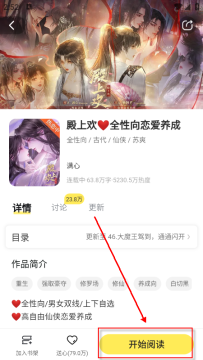 点击作品封面进入阅读详情页面,点击开始阅读。