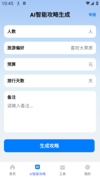 3、进入到【AI智能攻略】,可以根据用户的需求生成旅游攻略。