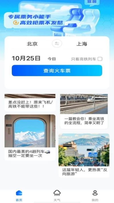 123火车票查询软件下载是南京微容云网络科技有限公司专为旅行用户打造的全能出行工具,集火车票实时查询、票价对比、行程规划、天气预测等功能于一体。无论是日常通勤还是长途旅行,用户均可通过简洁直观的界面快速获取车次、时刻表、票价信息,并一键完成预订,让出行计划更高效、更从容。内置智能天气系统,助您提前应对旅途中的天气变化,真正实现“一机在手,出行无忧”!