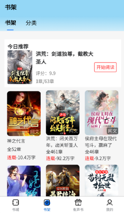 4、点击有声书,可选择感兴趣的小说进行听书阅读等