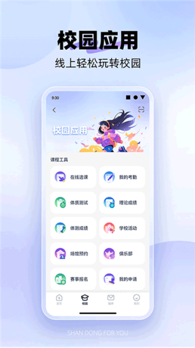提供课程考勤、在线选课、成绩查询等教务管理功能,实现体育课程与成绩的在线同步管理。