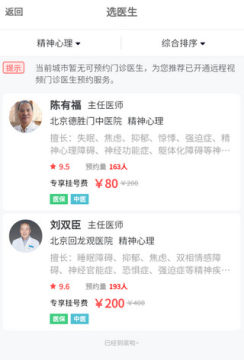 5、选择医生,如果该医院没有,可以选择其他医院的医生