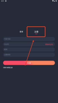 2、点击【注册】。
